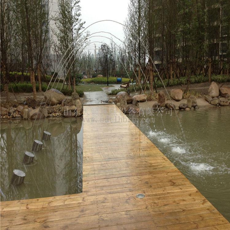 波光噴泉,波光跳泉的安裝數(shù)量可以根據(jù)環(huán)境的實(shí)際需要進(jìn)行增減,可以單根成形,水柱從一個(gè)水池跳到另一個(gè)水池,也可以多支組合加以隨意控制,更能演變成美妙和諧的空中水動(dòng)畫(huà),令人迷醉。還可以裝置在人行道上,人們從水門(mén)中穿行,衣沾不濕,奇妙無(wú)窮。